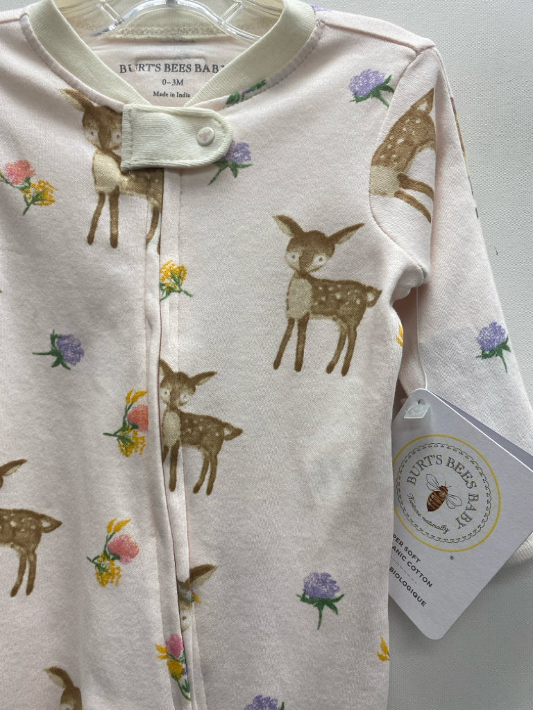 Burt's Bees Kids SIZE 0-3M Pink Brown Deer Girl's 1pc