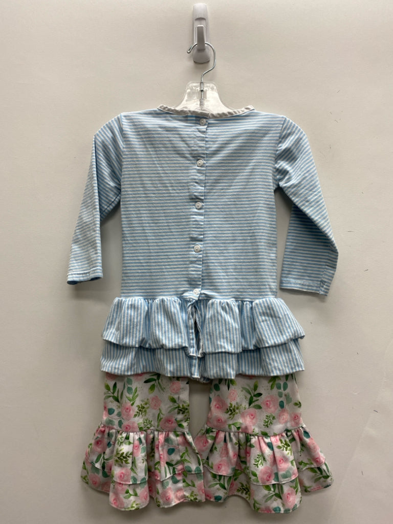 busy bees SIZE 4T Blue/White Pink Stripes/Flowers Girl's 2pc