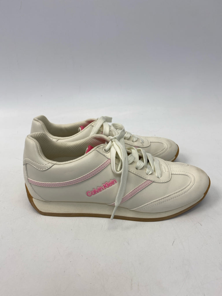 Calvin Klein Size 7.5 White Pink Lace-up Sneakers