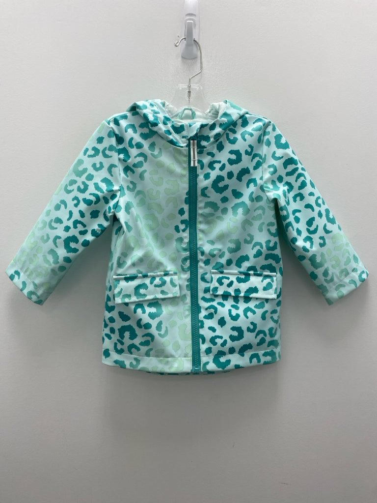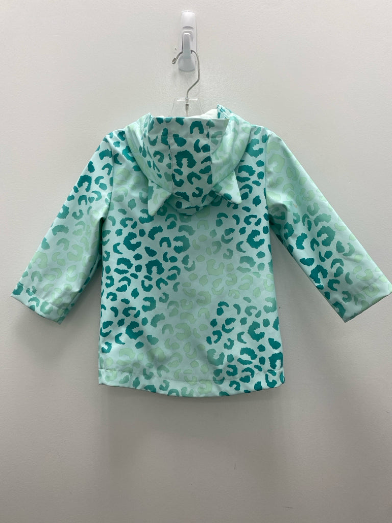 Cat & Jack SIZE 2T Aqua Teal Green Animal Print Zip Down Girl's Raincoat