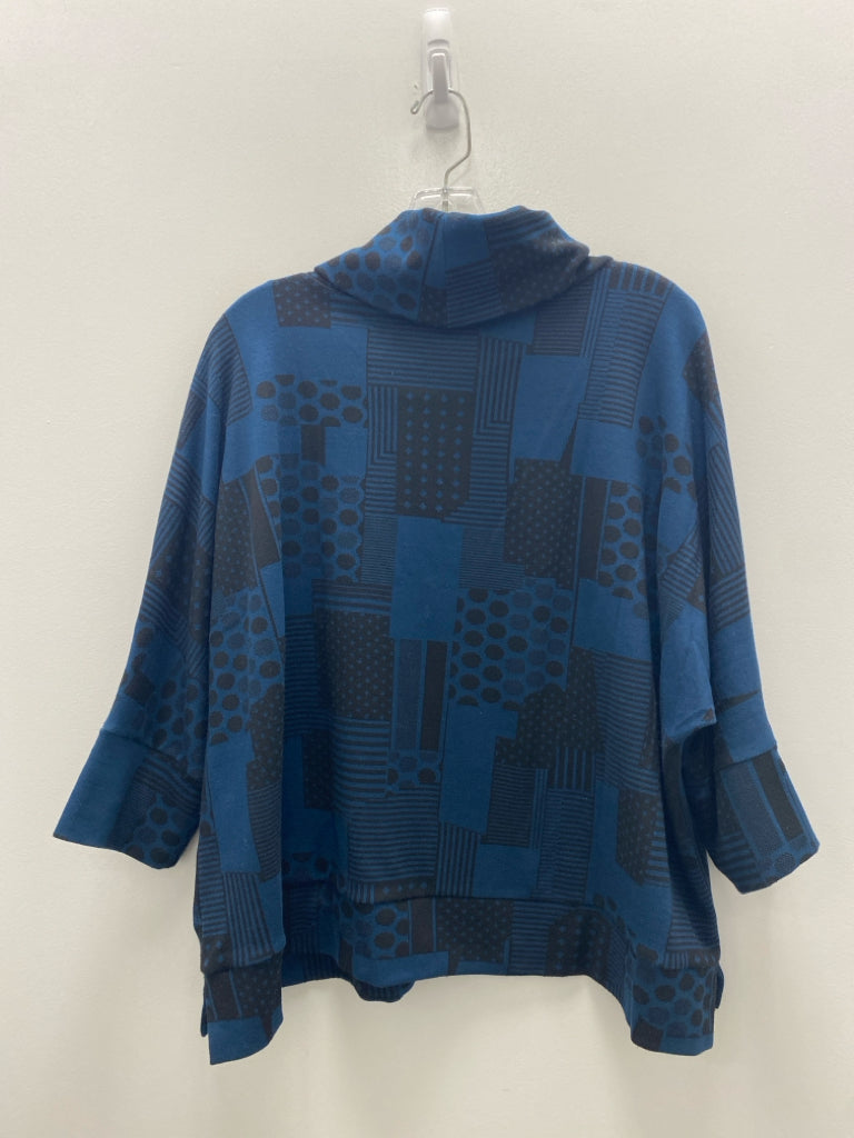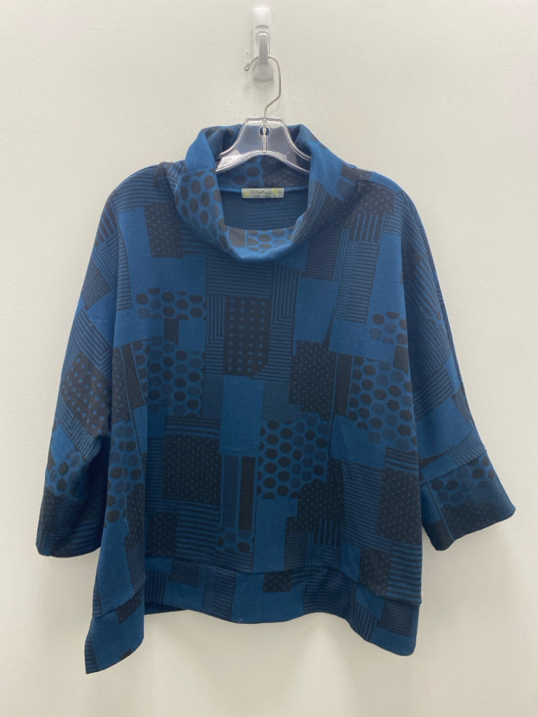 Chalet et ceci Size M Blue/Black Dots/Stripes Cowl Neck Ladies Top