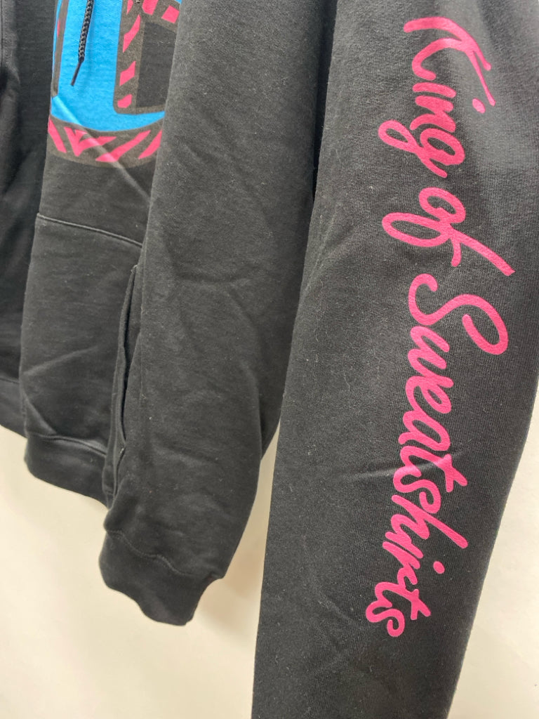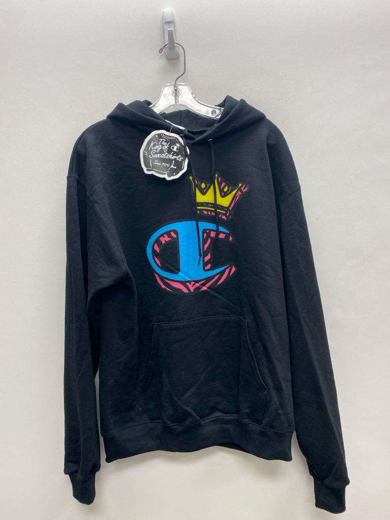 Champion Size L Black Yellow/Blue Crown Hooded Ladies Sweatshirt