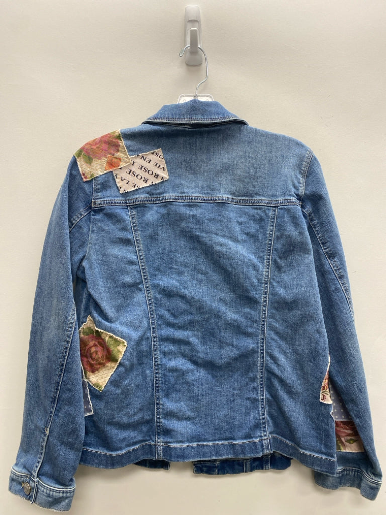 Chico's Size 1 Denim Patchwork Button Up Ladies Jacket