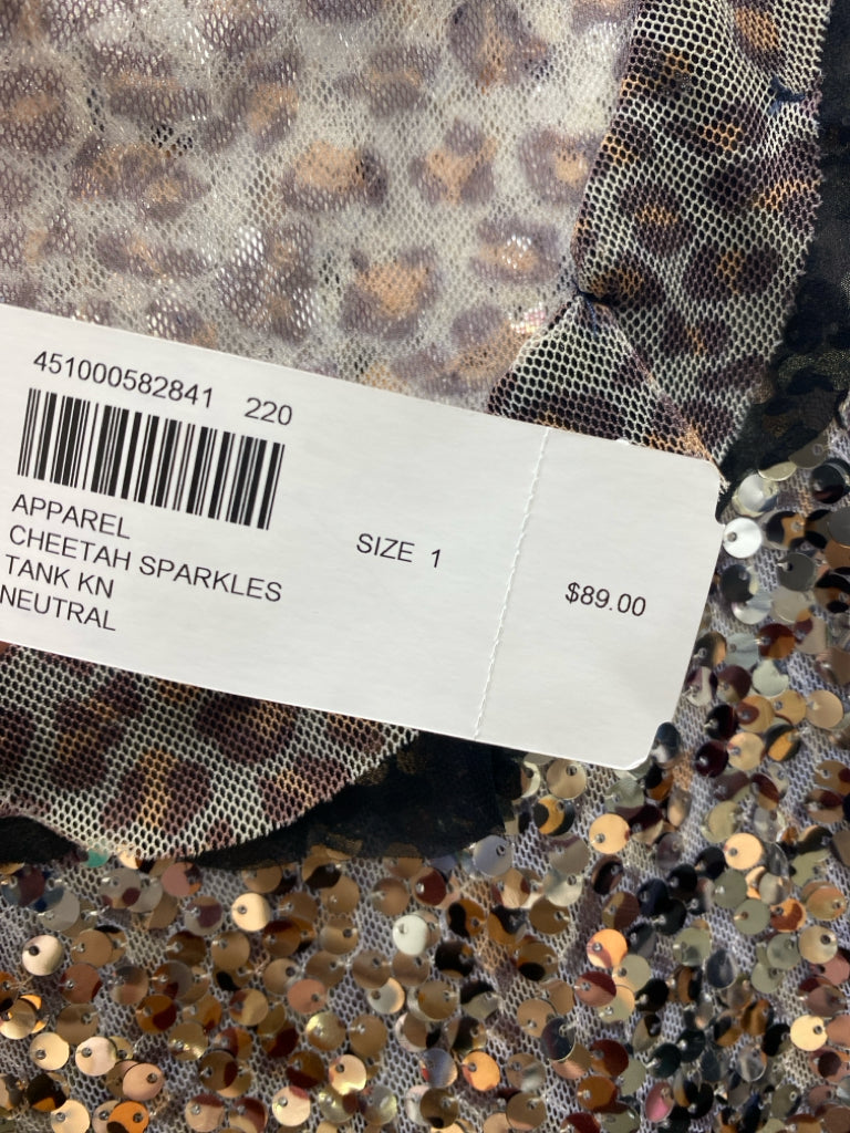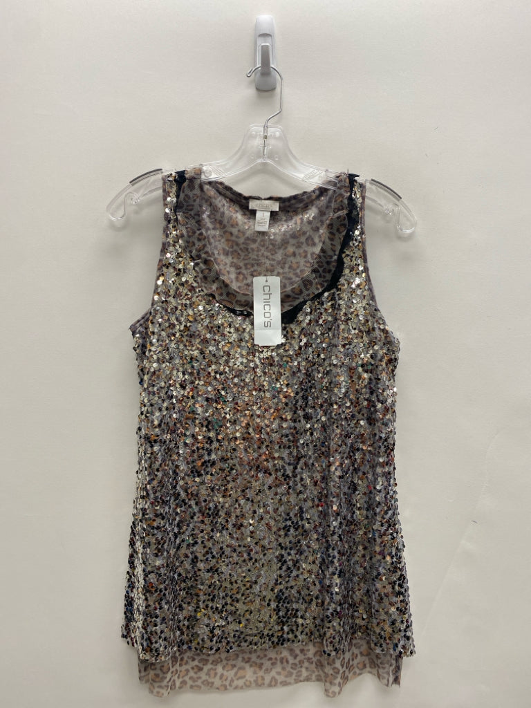 Chico's Size 1 Gray Silver/Gold Sequins Sleeveless Ladies Top