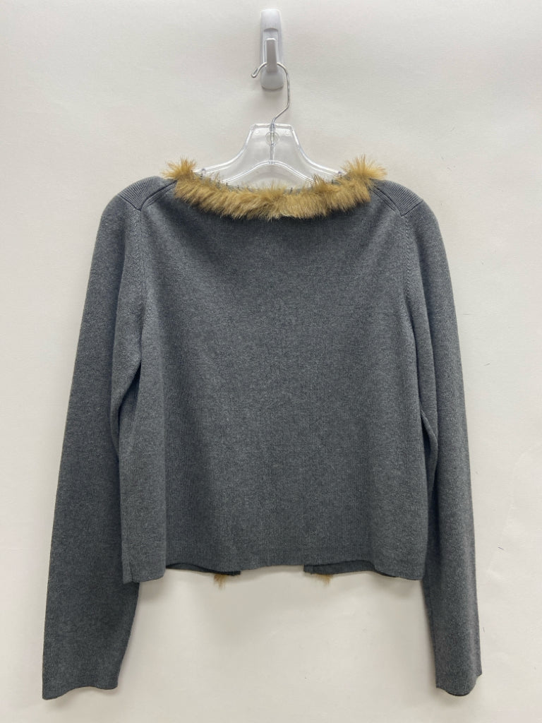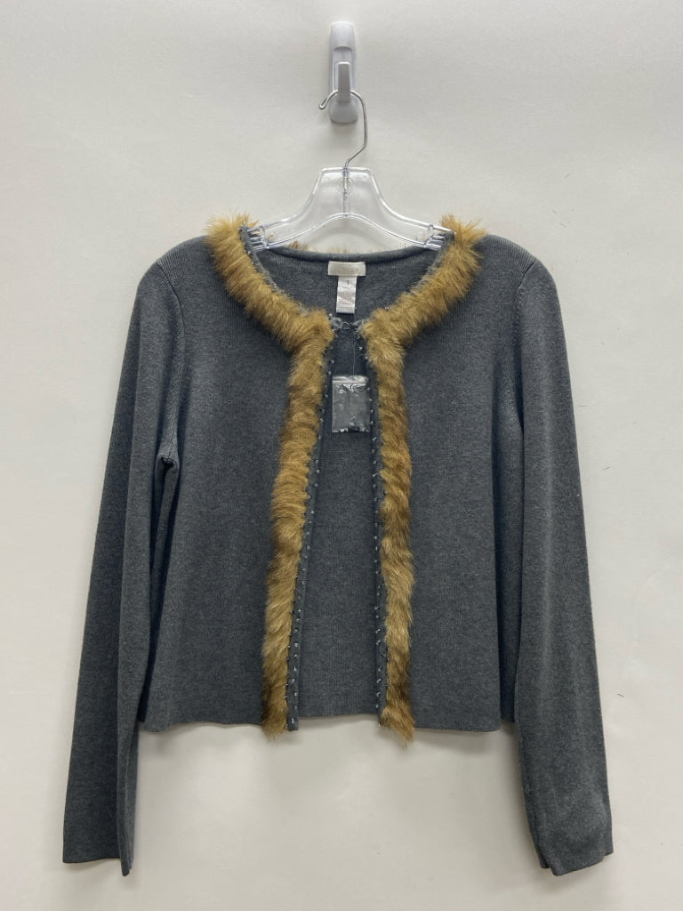 Chico's Size 1 Gray Tan Beaded Faux Fur Ladies Sweater