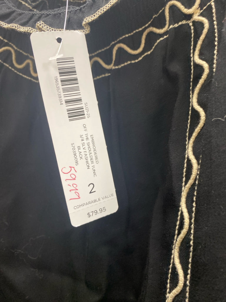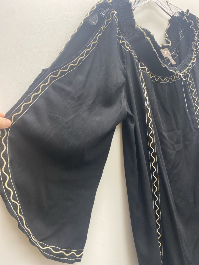 Chico's Size 2 Black Beige Smocking Embroidered Ladies Top