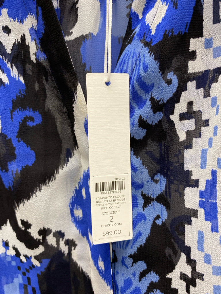 Chico's Size 2 Black Blue/White Medallion Button Up Ladies Top
