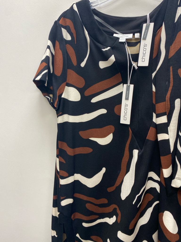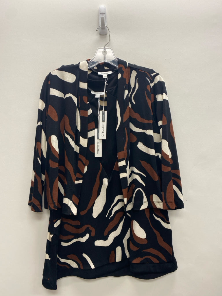 Chico's Size 2 Black White/Brown Shapes Ladies Jacket