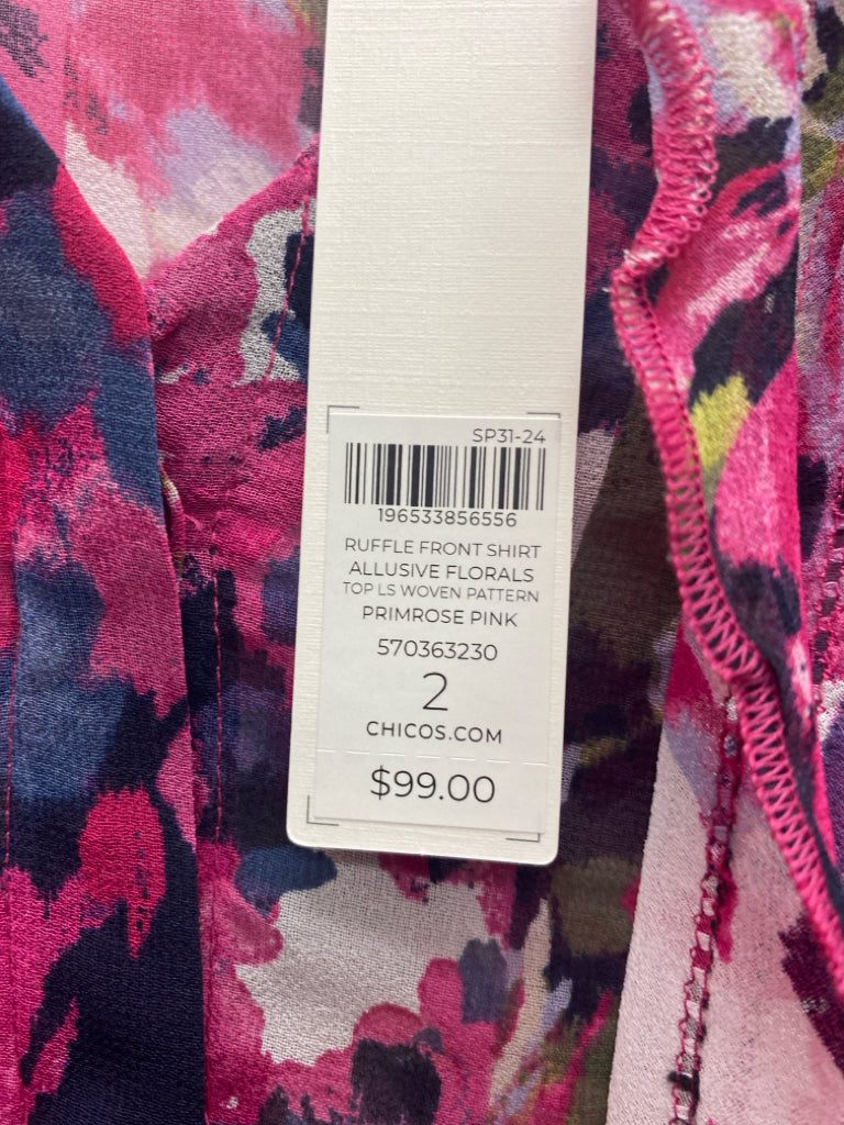 Chico's Size 2 Pink Navy/White Floral Button Up Ladies Top