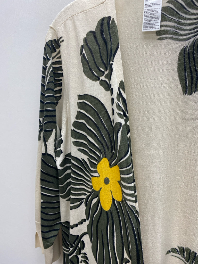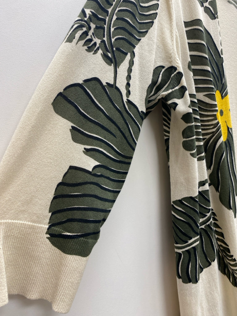 Chico's Size 3 Cream Green/Yellow Floral Ladies Sweater