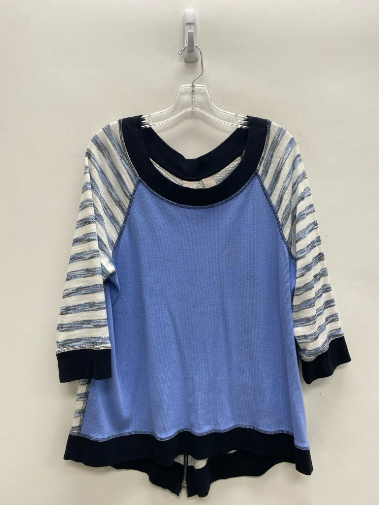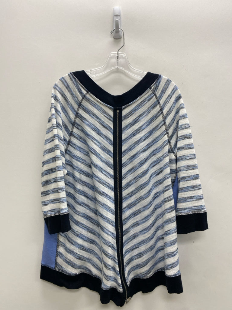 Chico's Size 3 White Blue/Black Striped Zip Down Ladies Top