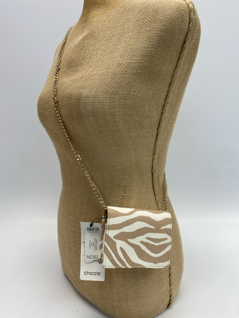[{"id":41864677556327,"title":"Tan","option1":"Tan","option2":null,"option3":null,"sku":"27305-293","requires_shipping":true,"taxable":true,"featured_image":null,"available":true,"name":"Chico's Tan White Animal Print Wallet - Tan","public_title":"Tan","options":["Tan"],"price":800,"weight":907,"compare_at_price":null,"inventory_management":"shopify","barcode":"03966621","requires_selling_plan":false,"selling_plan_allocations":[]}]