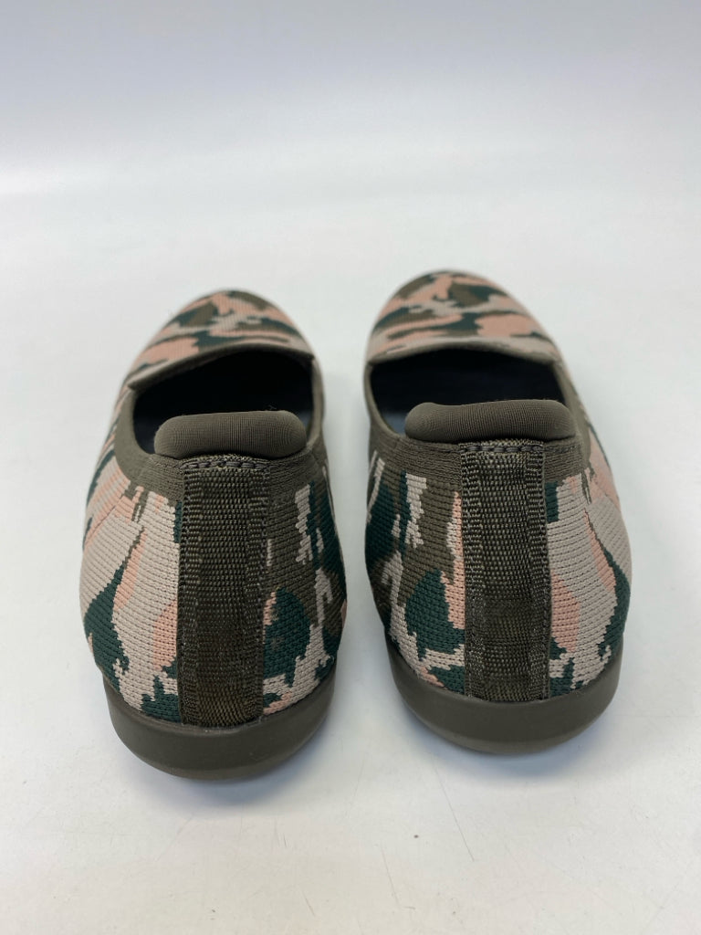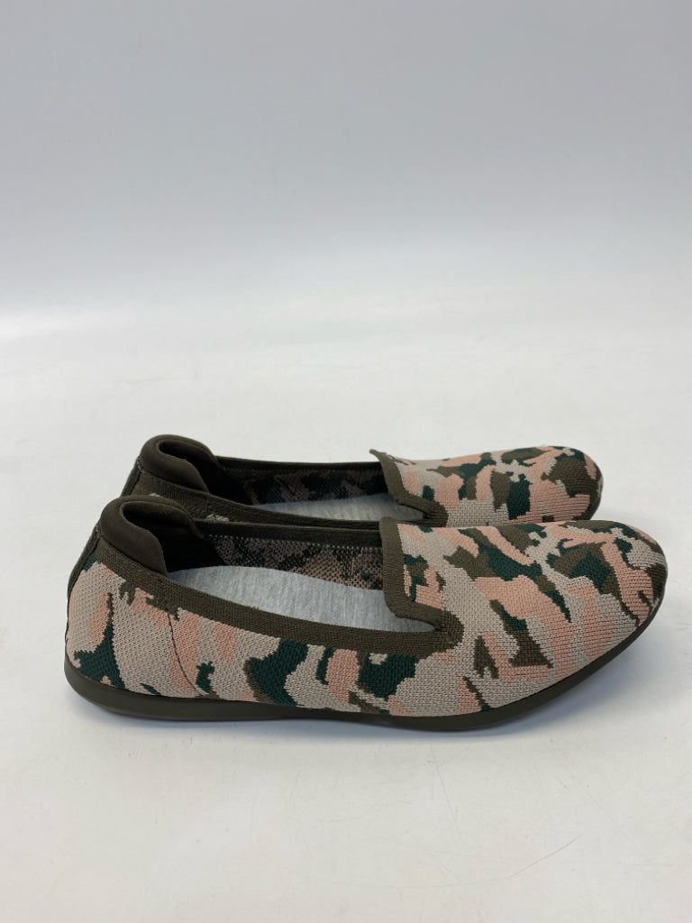 Clarks Size 7 Olive Pink/Brown Camouflage Knit Flats