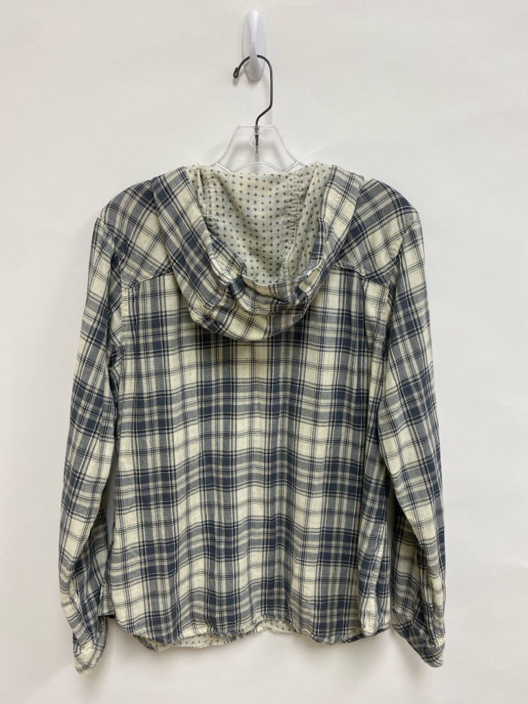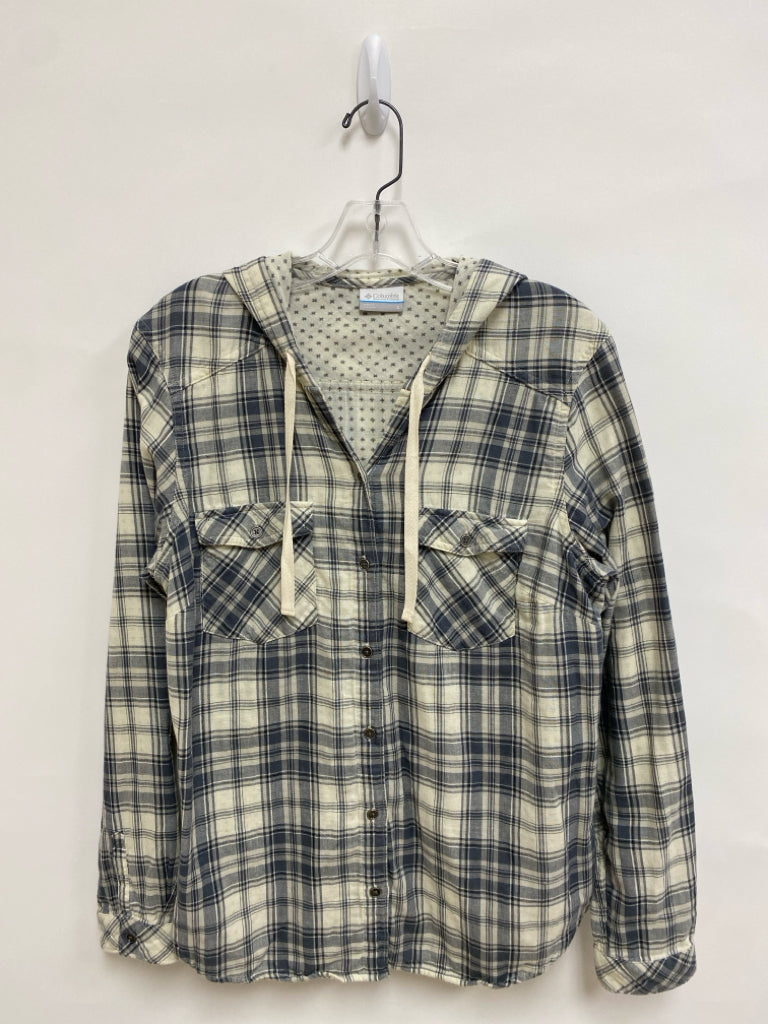 Columbia Size L Cream/Gray Plaid Hooded Ladies Top
