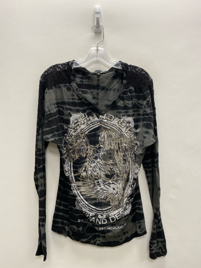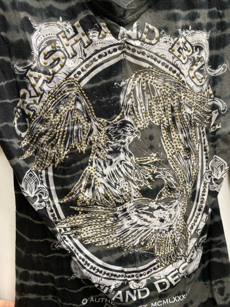 Crash & Burn Size S Black/Gray Tie Dye V Neck Ladies Top