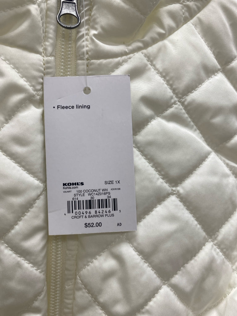 Croft/Barrow SIZE 1X White Zip Down Quilted Plus Size Vest