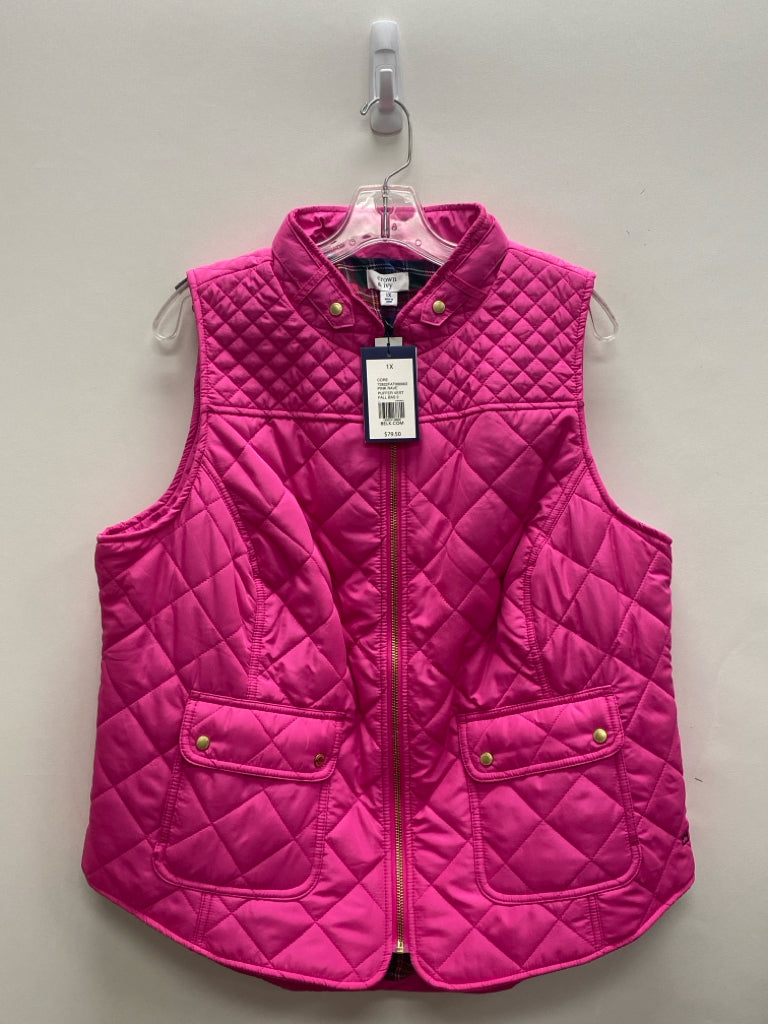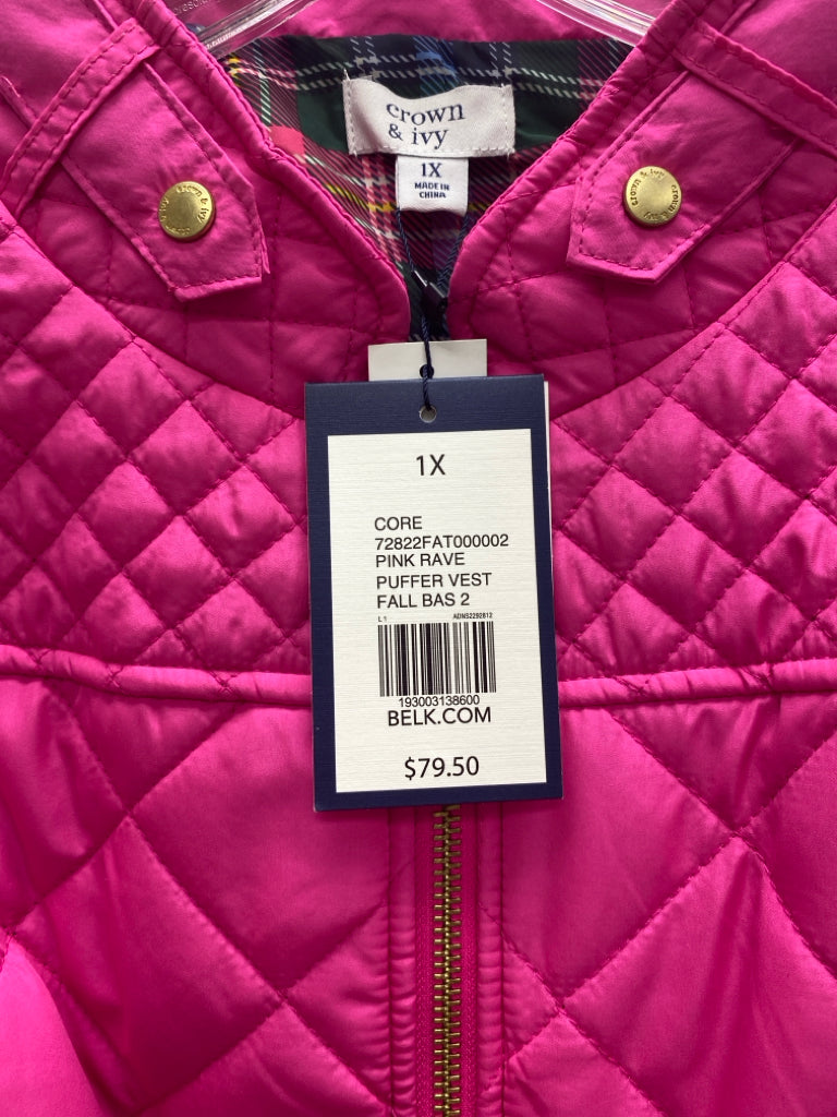 Crown & Ivy SIZE 1X Fuschia Zip Down Quilted Plus Size Vest