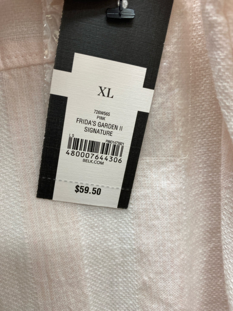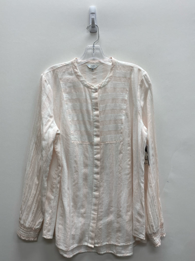 Crown & Ivy Size XL White Pale Pink Stripes Button Up Ladies Top