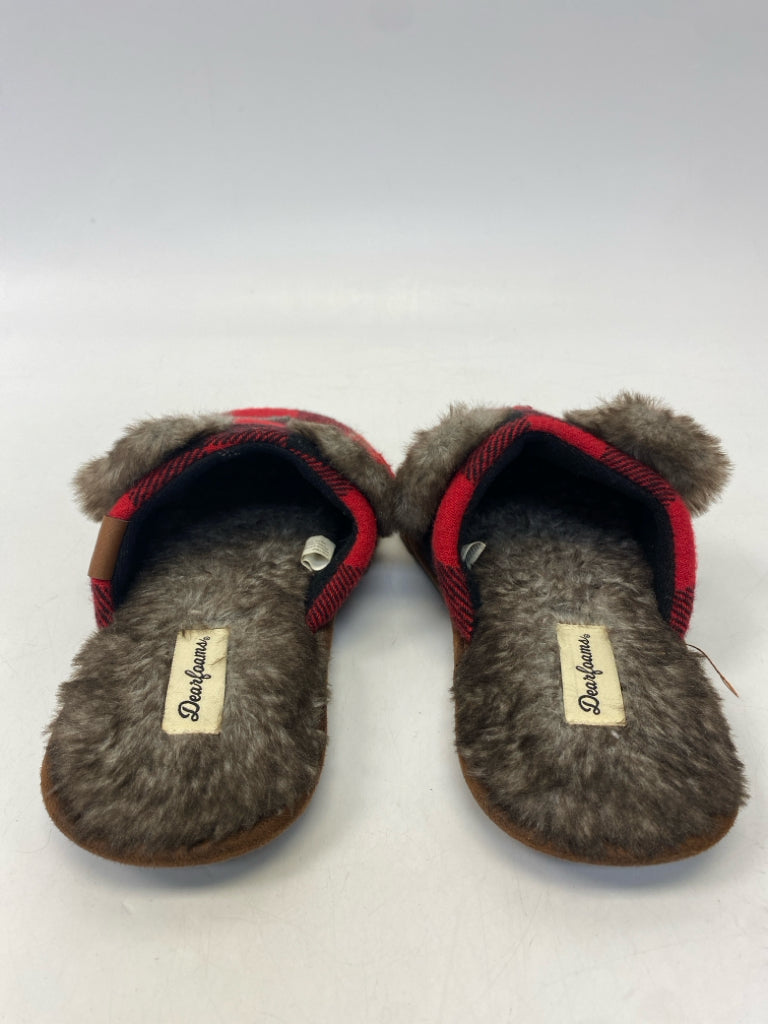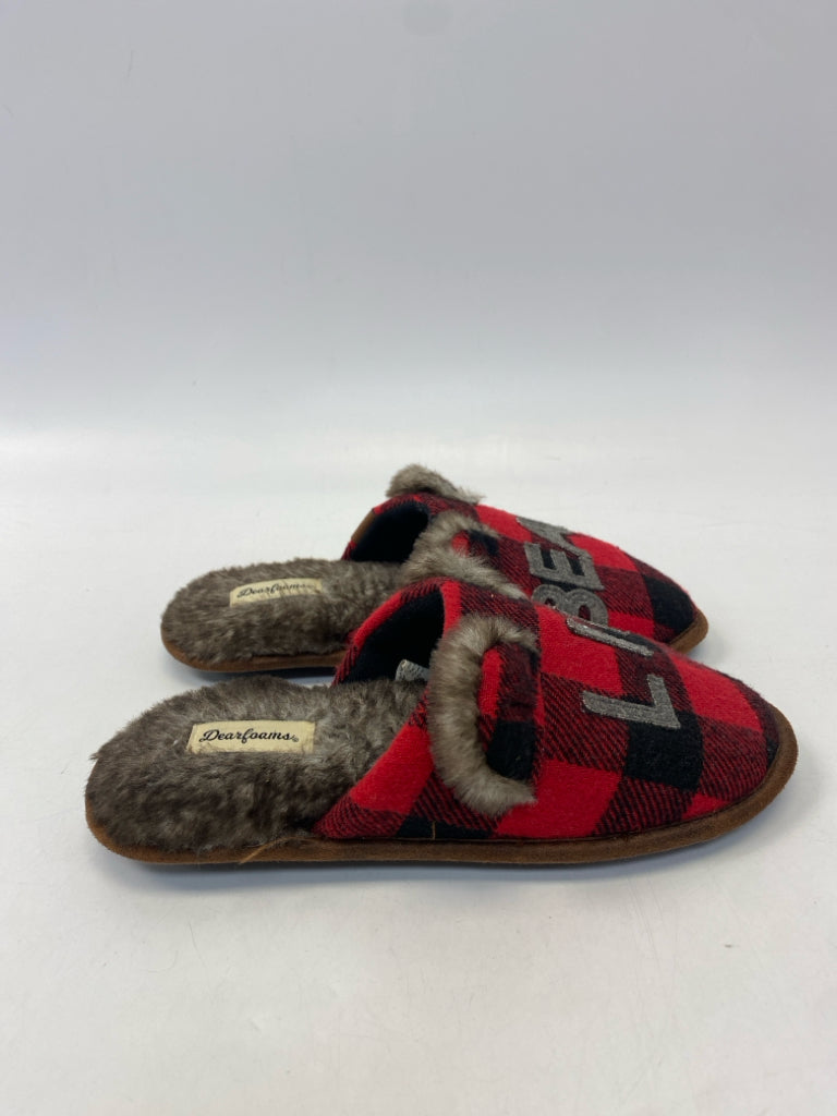 Dearfoams Size 7/8 Red Black Plaid Slippers