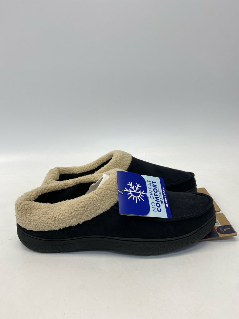 Dearfoams Size L Black Cream Men's Slippers