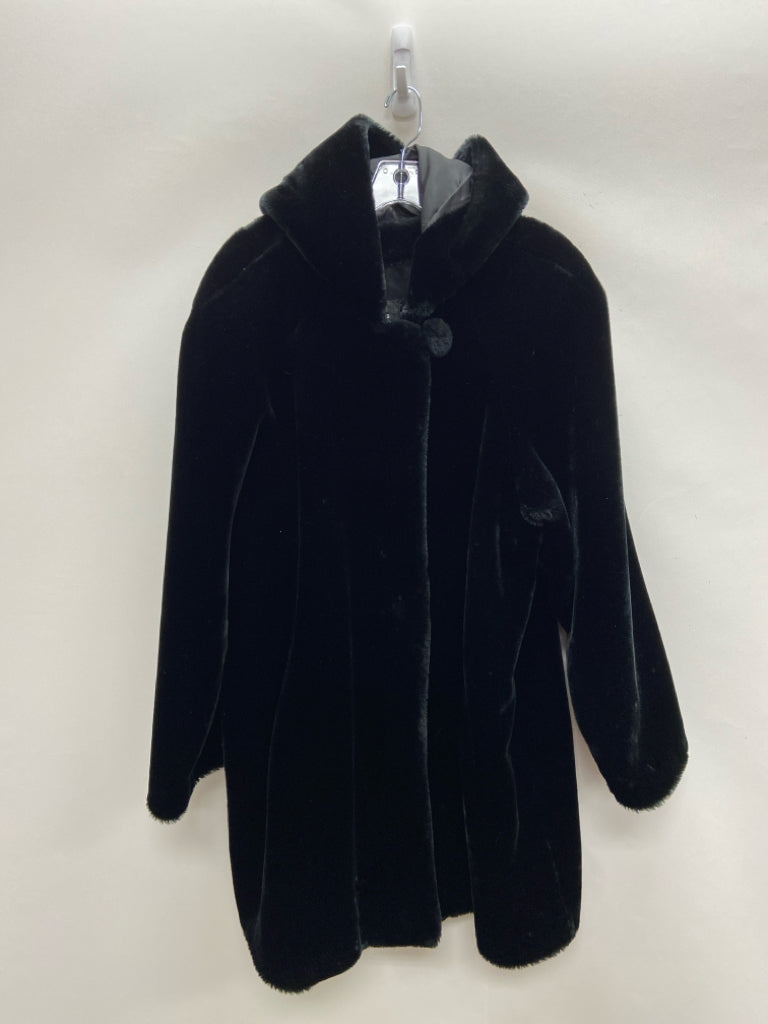 Dennis Basso Size XL Black Zip Down Faux Fur Ladies Coat