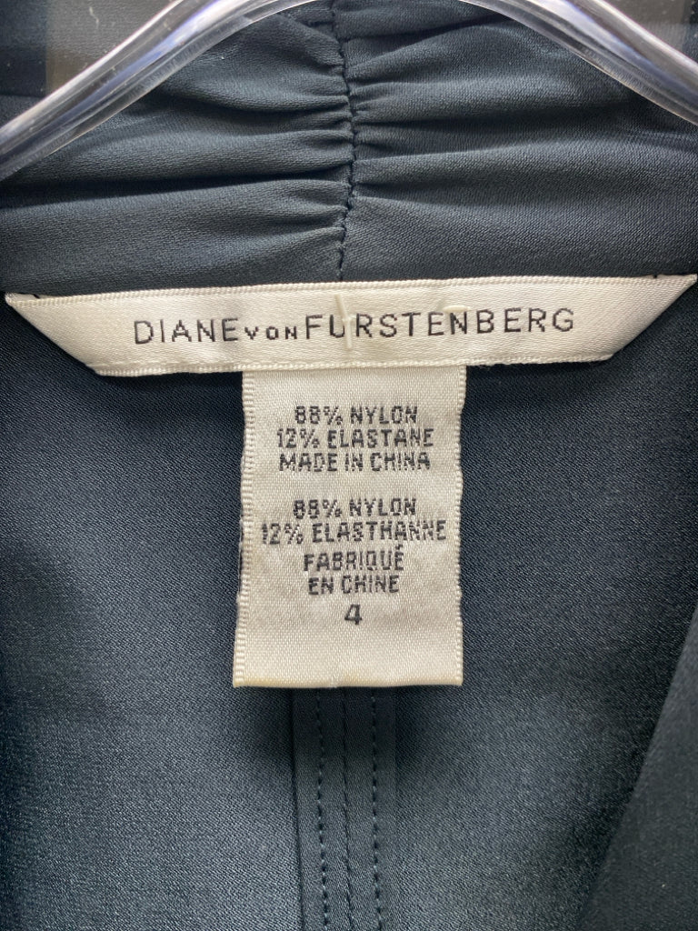 Diane Von Furstenberg Size 4 Dark Blue Black Wrap Ladies Dress