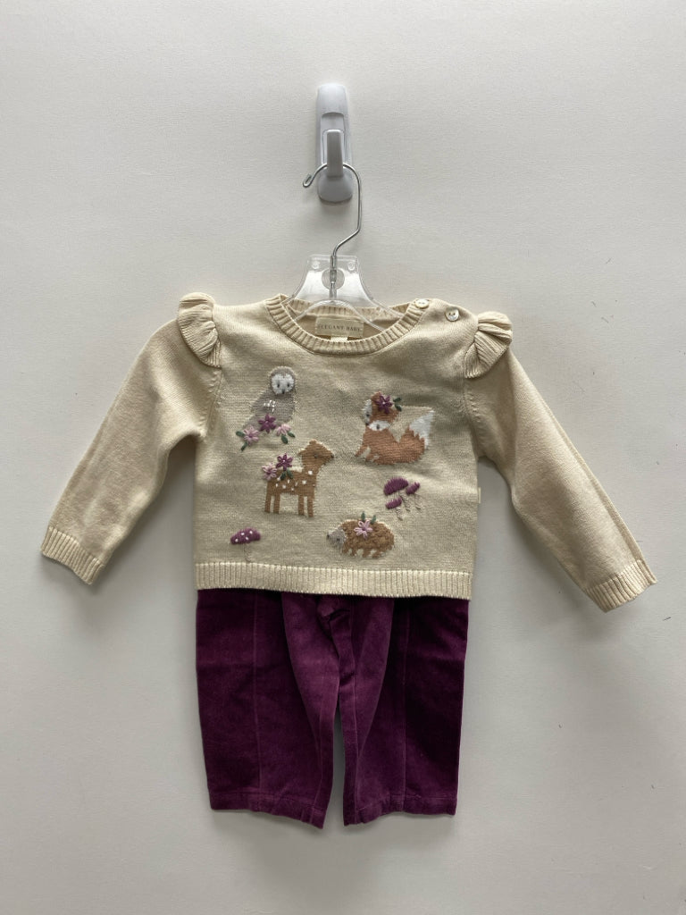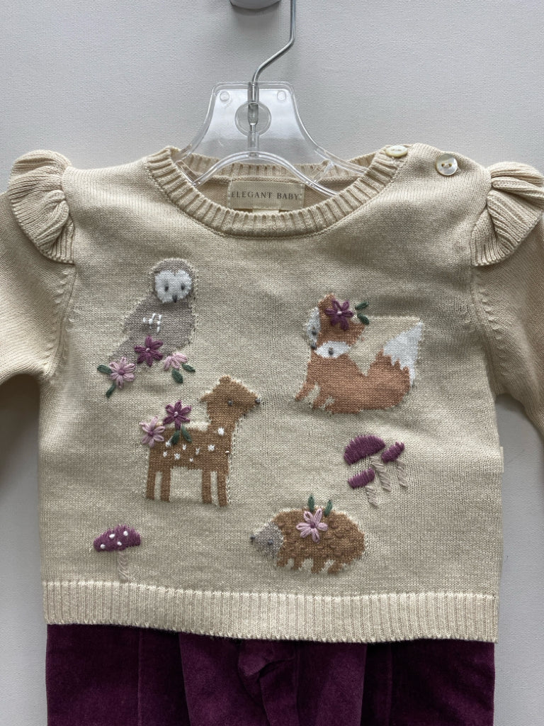 ELEGANT BABY SIZE 6-9M Khaki Purple Animals Velour Girl's 2pc
