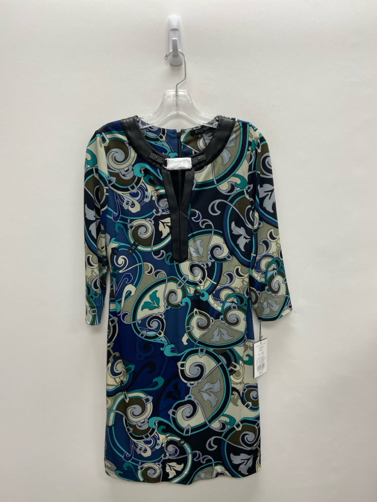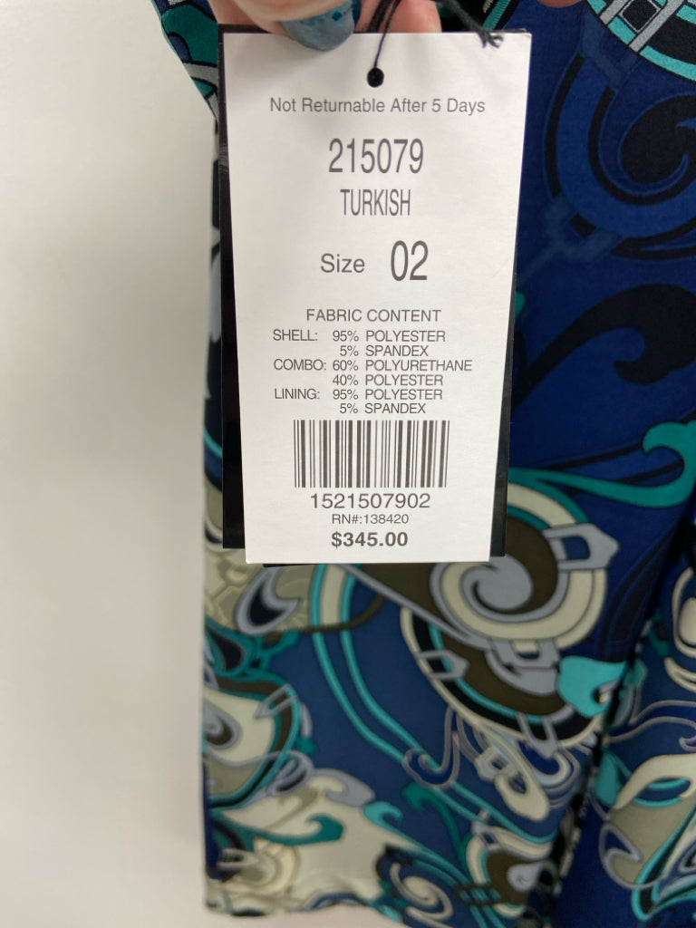 ETCETERA Size 2 Black/Gray Teal Blue Print Ladies Dress