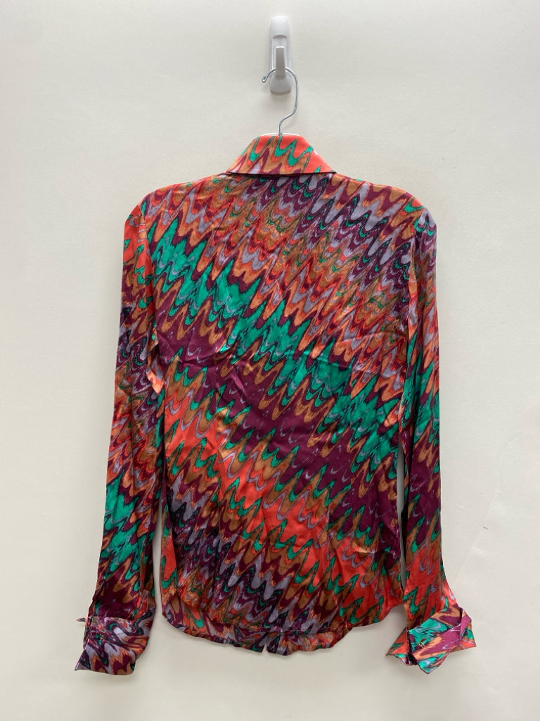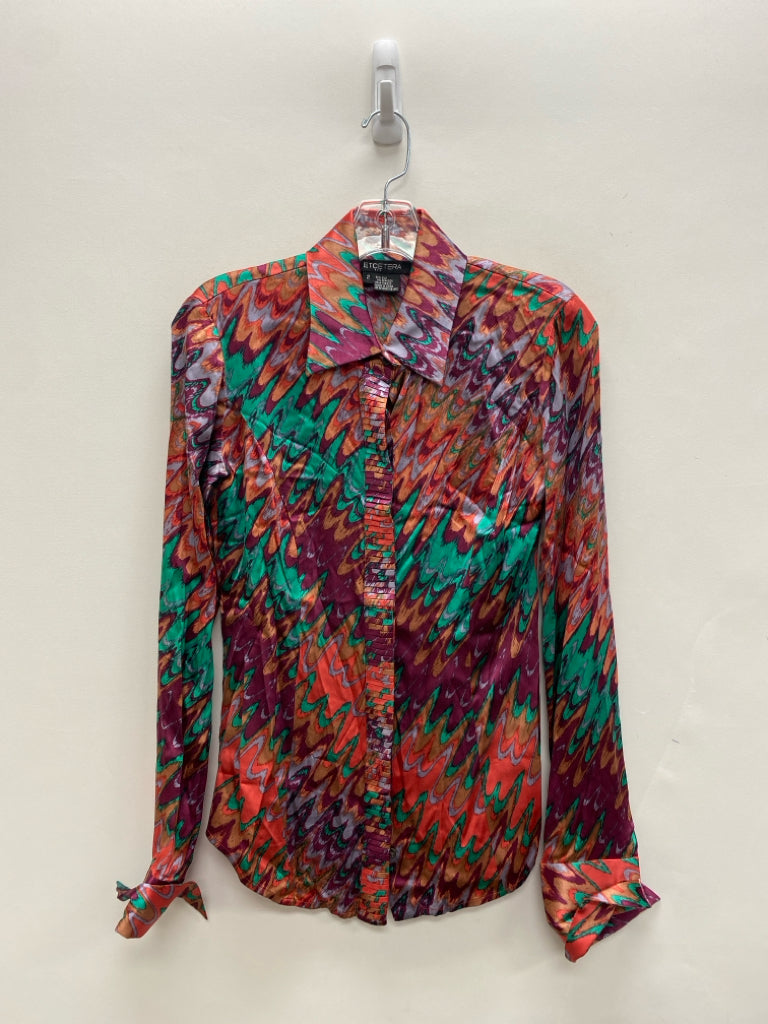 ETCETERA Size 2 Coral Purple/Green Print Button Up Silk Blend Ladies Top