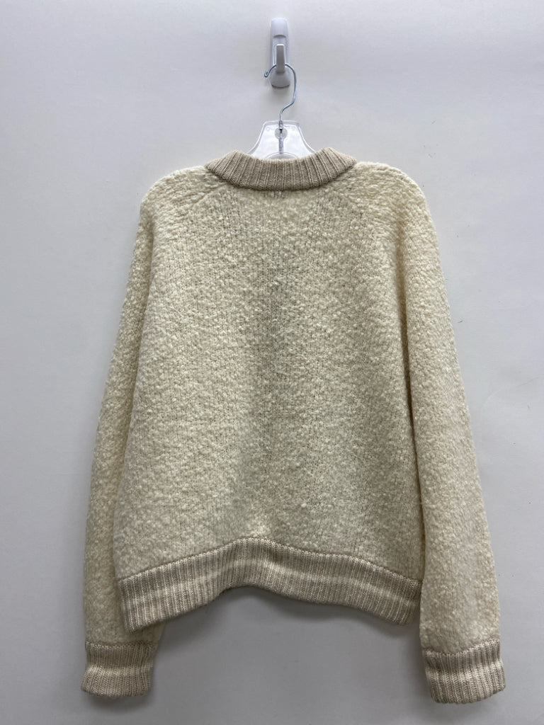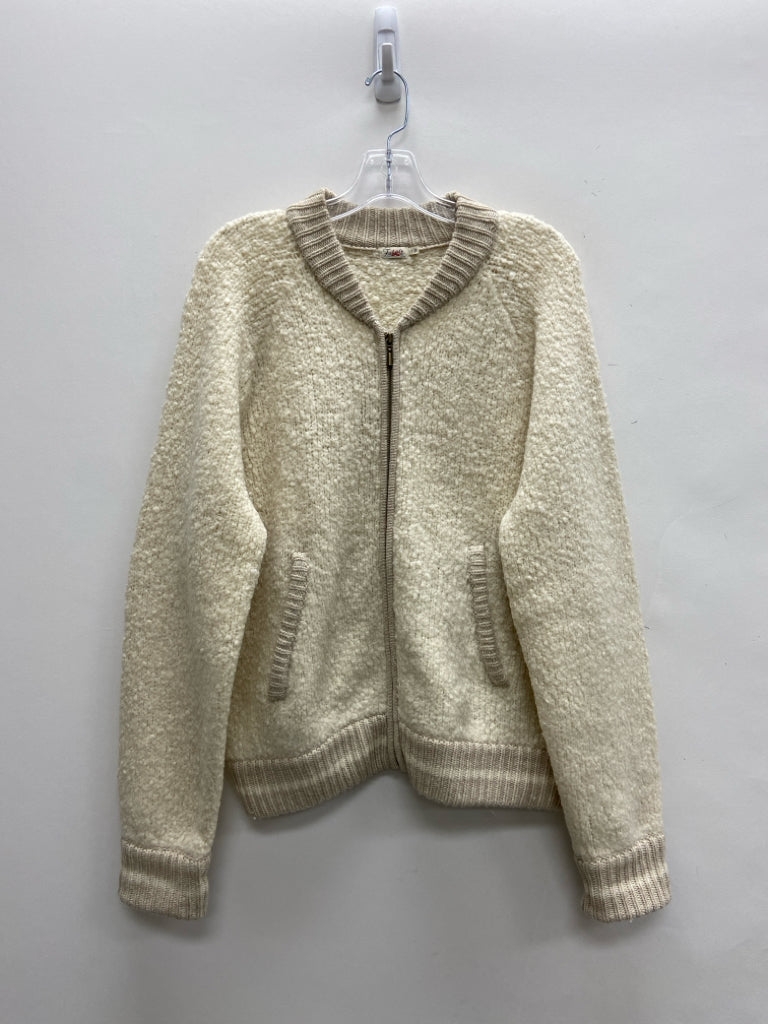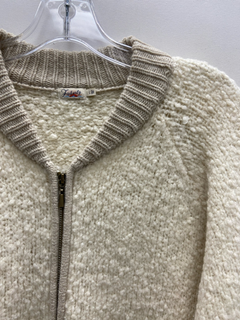 FAHERTY Size L Cream Beige Trimmed Zip Down Ladies Sweater