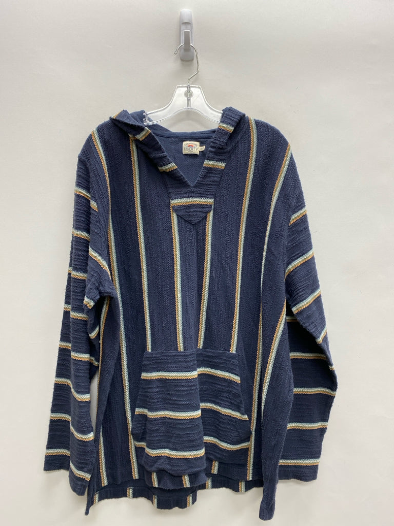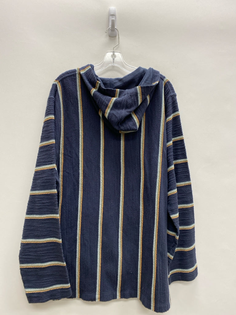 FAHERTY Size XXL Navy Cream/Tan Striped Hooded Men's Long Sleeve Shirt