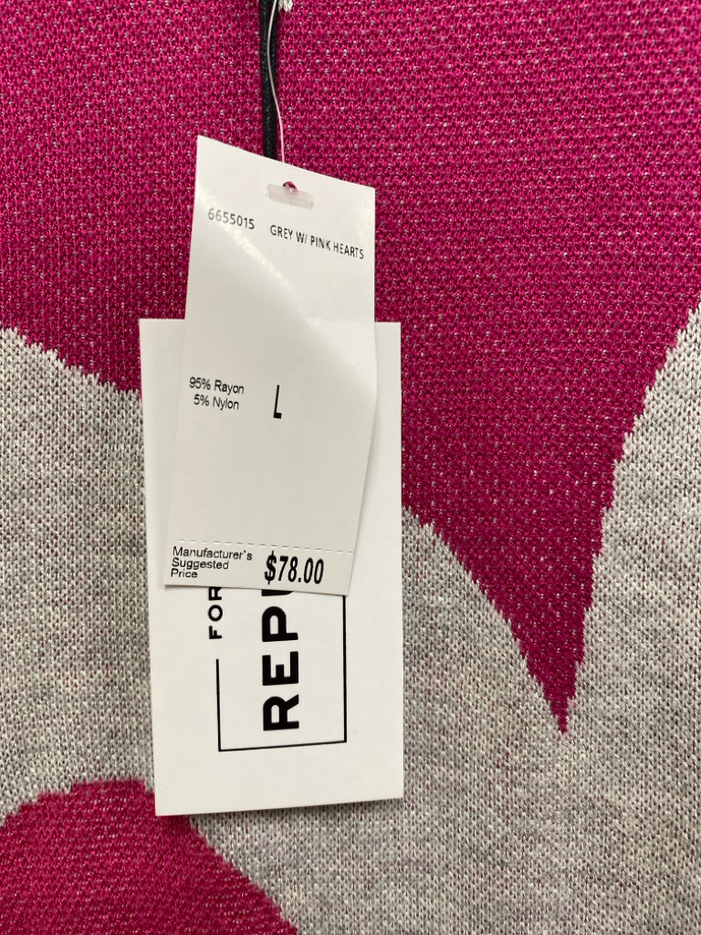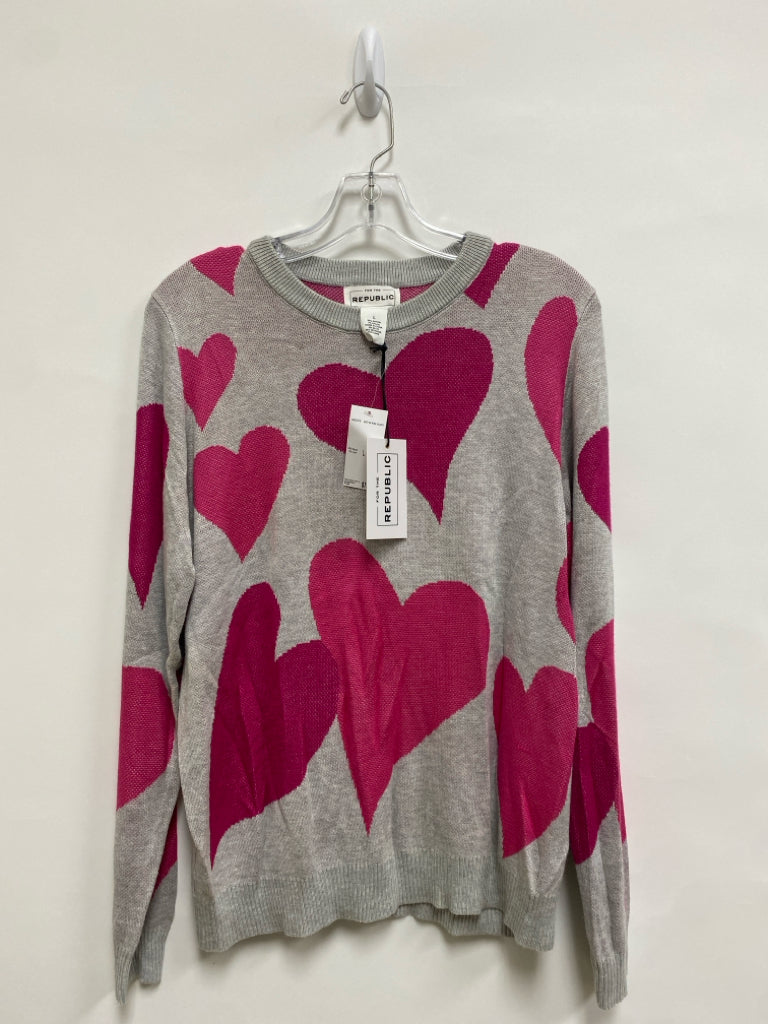 For the Republic Size L Gray Pink Hearts Ladies Sweater