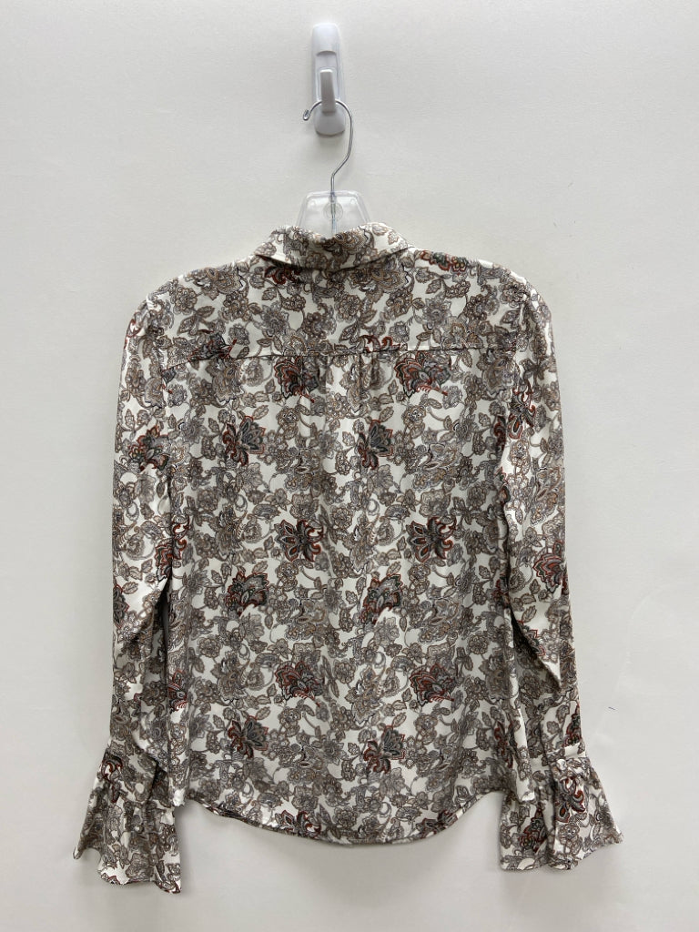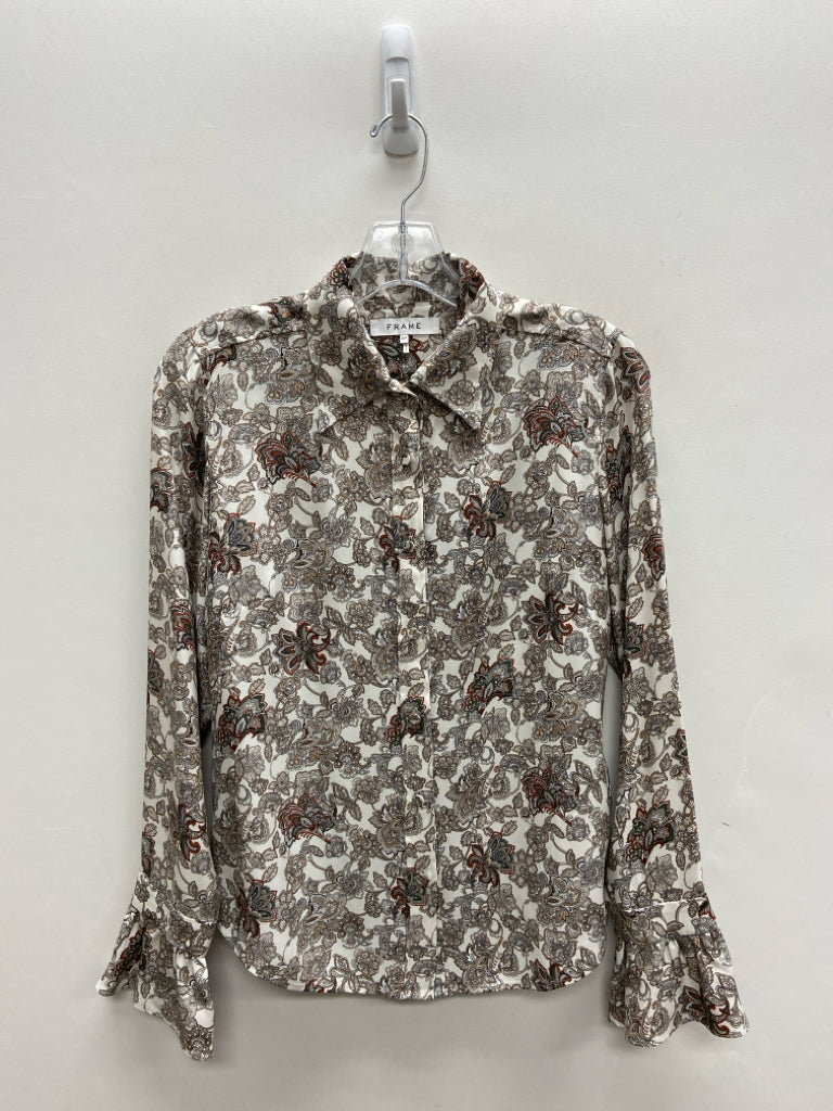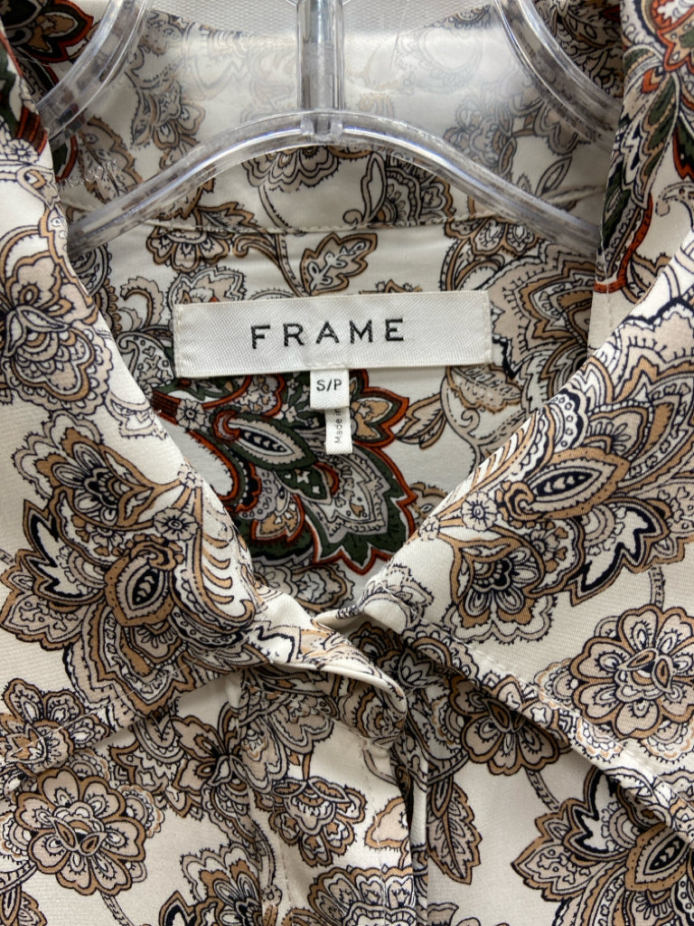 FRAME Size S White/Brown Coral/Green Acanthus Bell Sleeves Silk Ladies Top