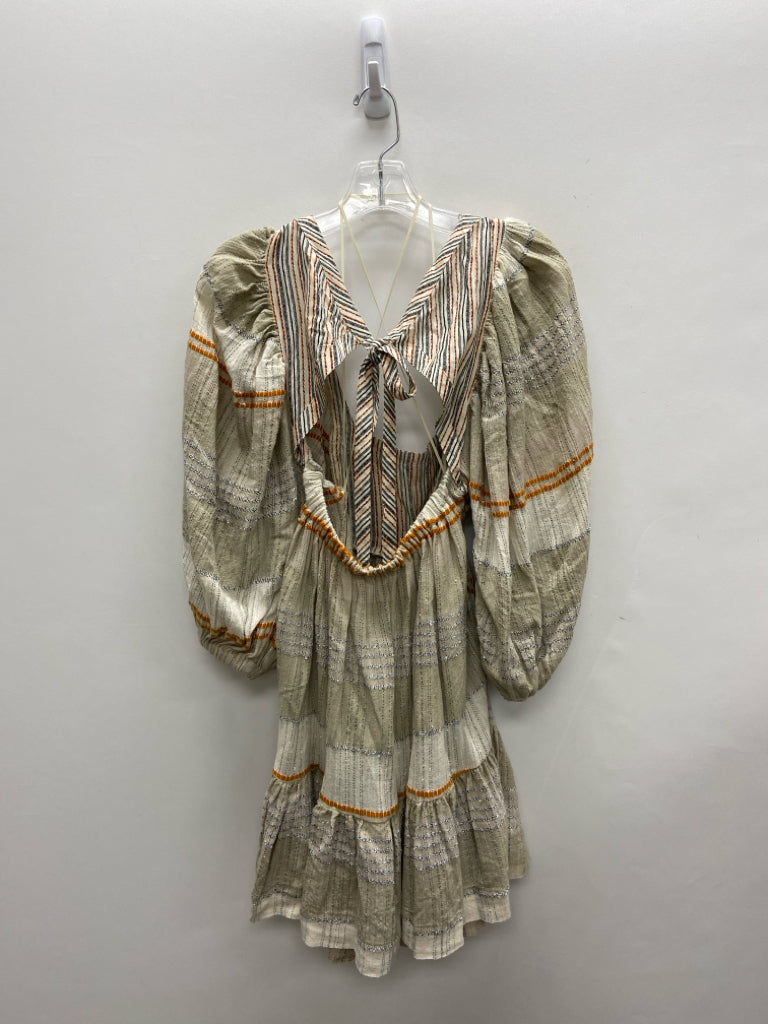 Free People Size M Beige Tan/Yellow Striped Ladies Dress