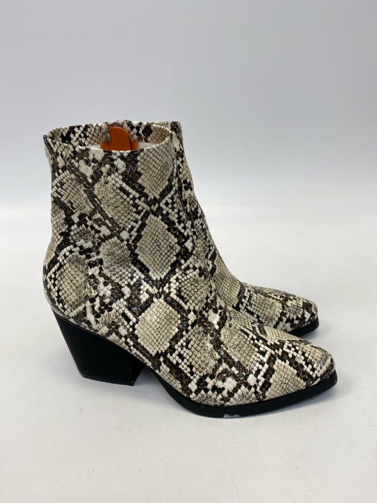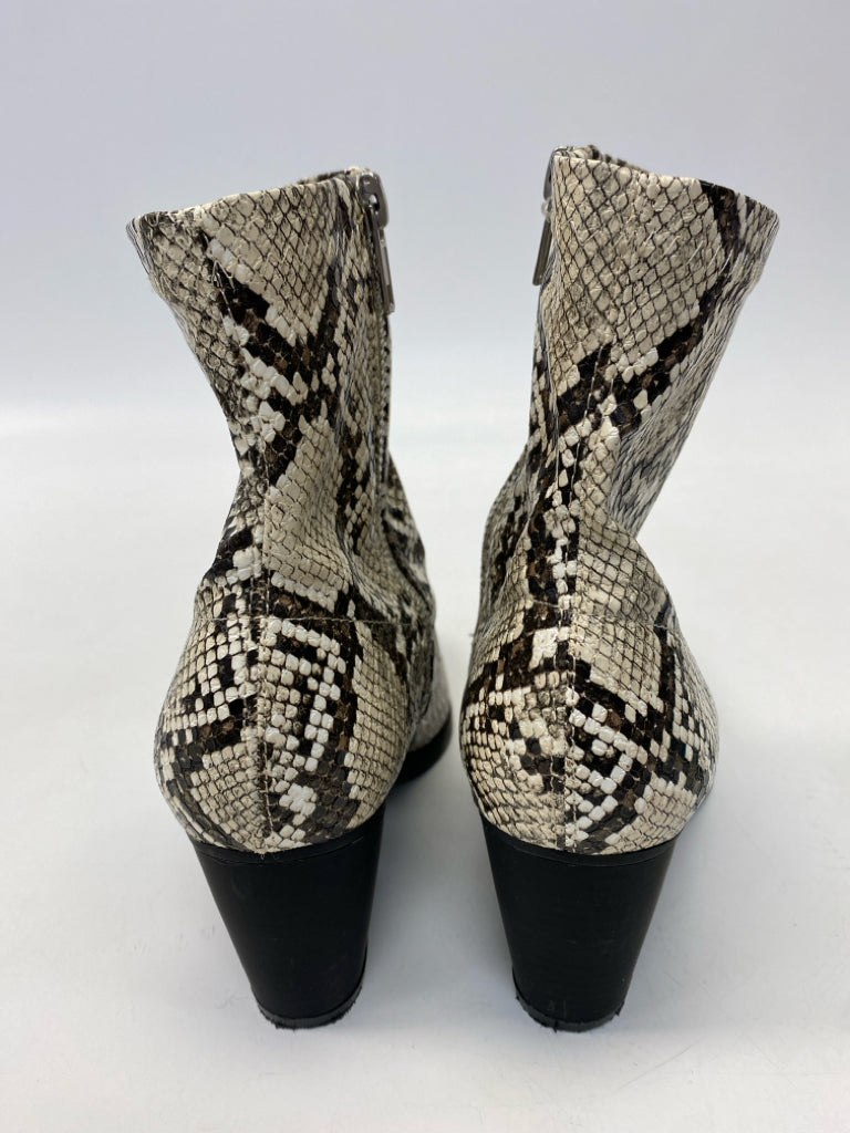 French Connection Size 7 Cream/Black Snakeprint Boots