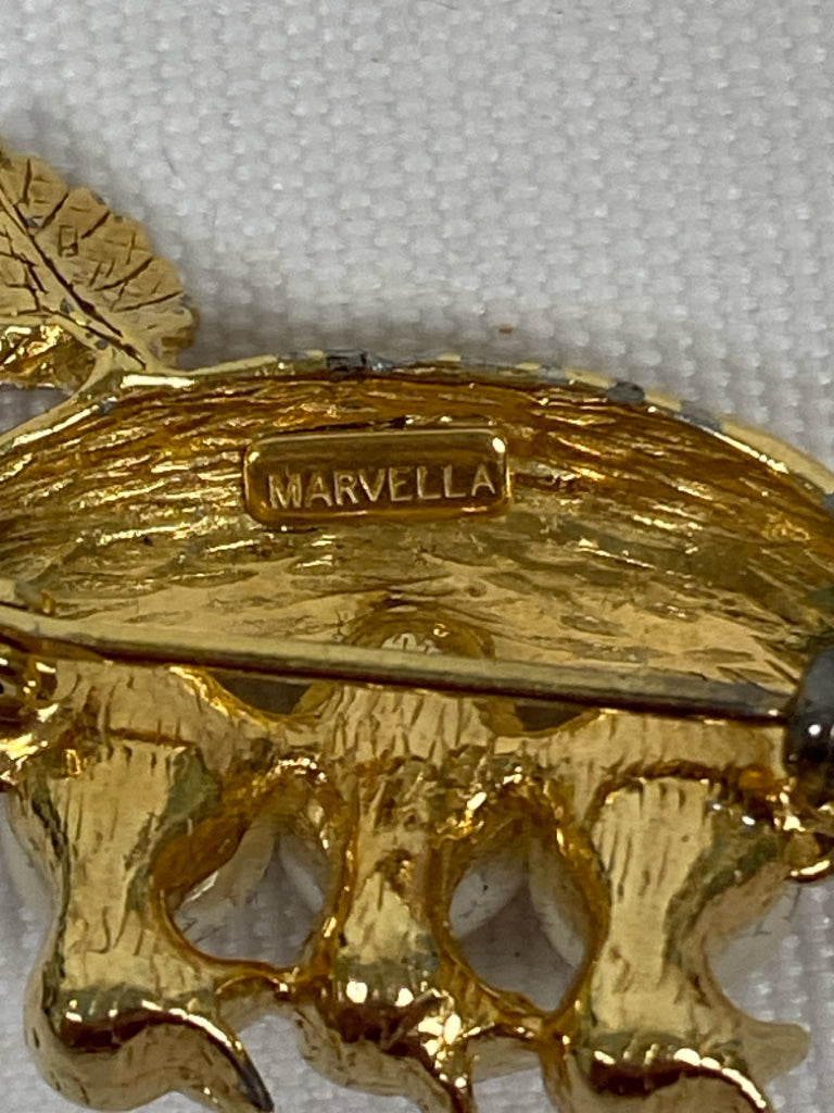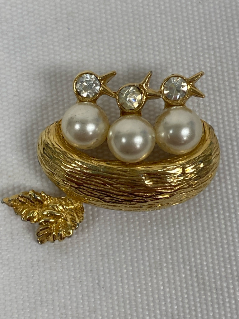 Gold Color Pearl Color Jeweled Pin