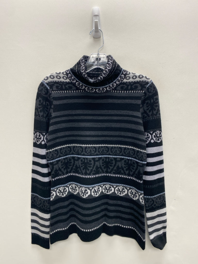 Icelandic Size S Black/Gray White/Blue Assorted Print Turtleneck Ladies Sweater