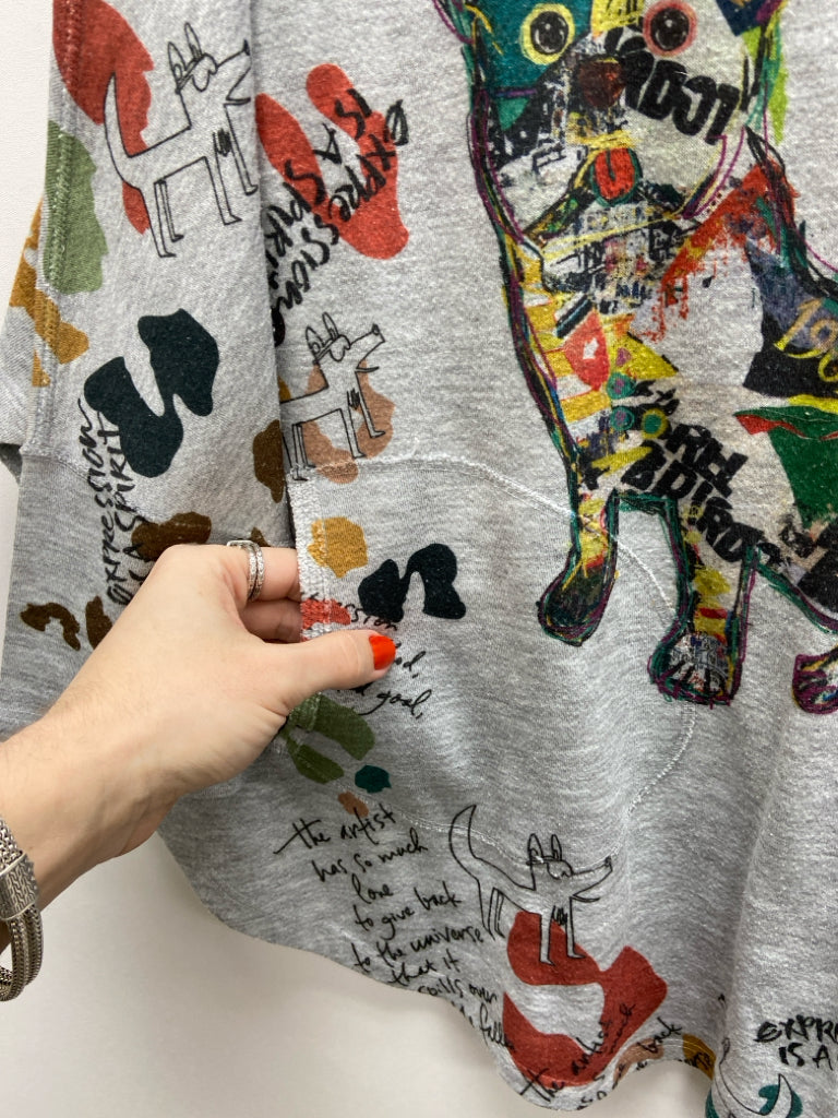 Inoah Size OSFM Gray Black/Multi Dogs Tunic Ladies Top