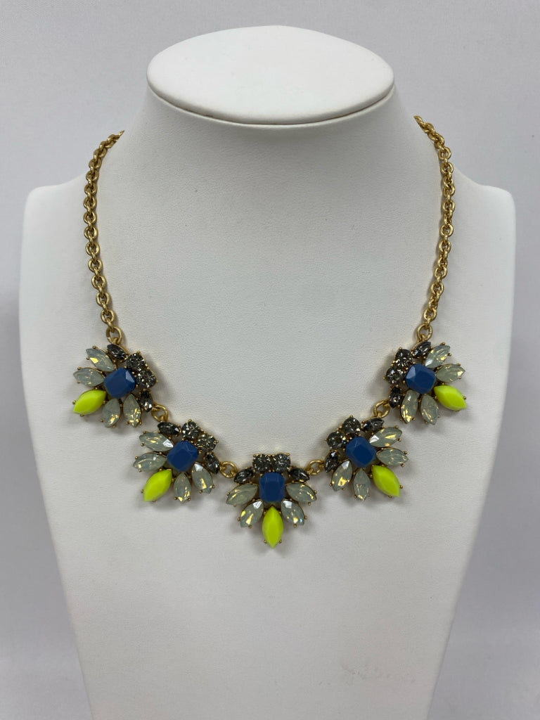 J Crew Gold Color Yellow/Blue Cluster Necklace