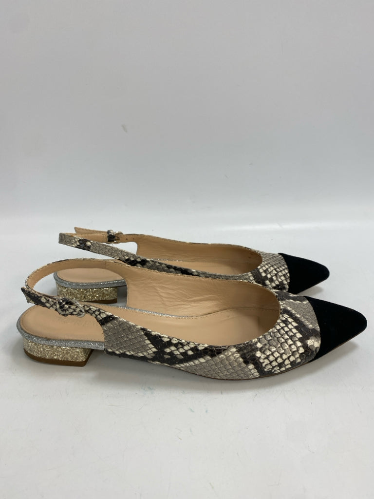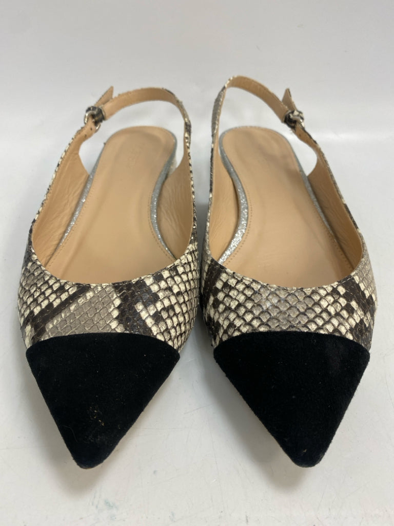 J Crew Size 8.5 Black/Gray Cream Snakeprint Flats