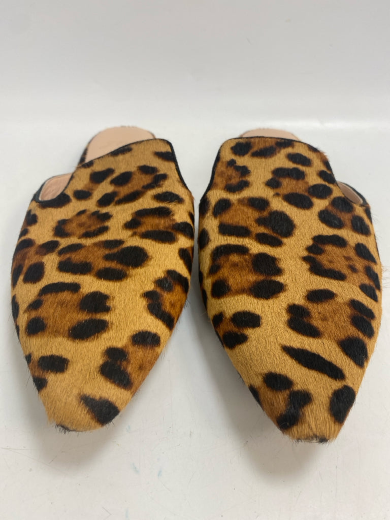 J Crew Size 9 Brown Black Animal Print Faux Fur Mules