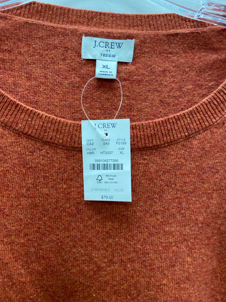 [{"id":41798967787623,"title":"XL","option1":"XL","option2":null,"option3":null,"sku":"5026-4991","requires_shipping":true,"taxable":true,"featured_image":null,"available":true,"name":"J Crew Size XL Dark Orange Ladies Sweater - XL","public_title":"XL","options":["XL"],"price":3400,"weight":454,"compare_at_price":null,"inventory_management":"shopify","barcode":"03957731","requires_selling_plan":false,"selling_plan_allocations":[]}]