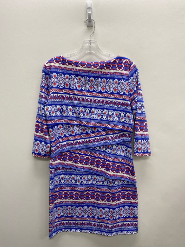 J McLaughlin Size M Royal Blue Red/White Geometric Ladies Dress