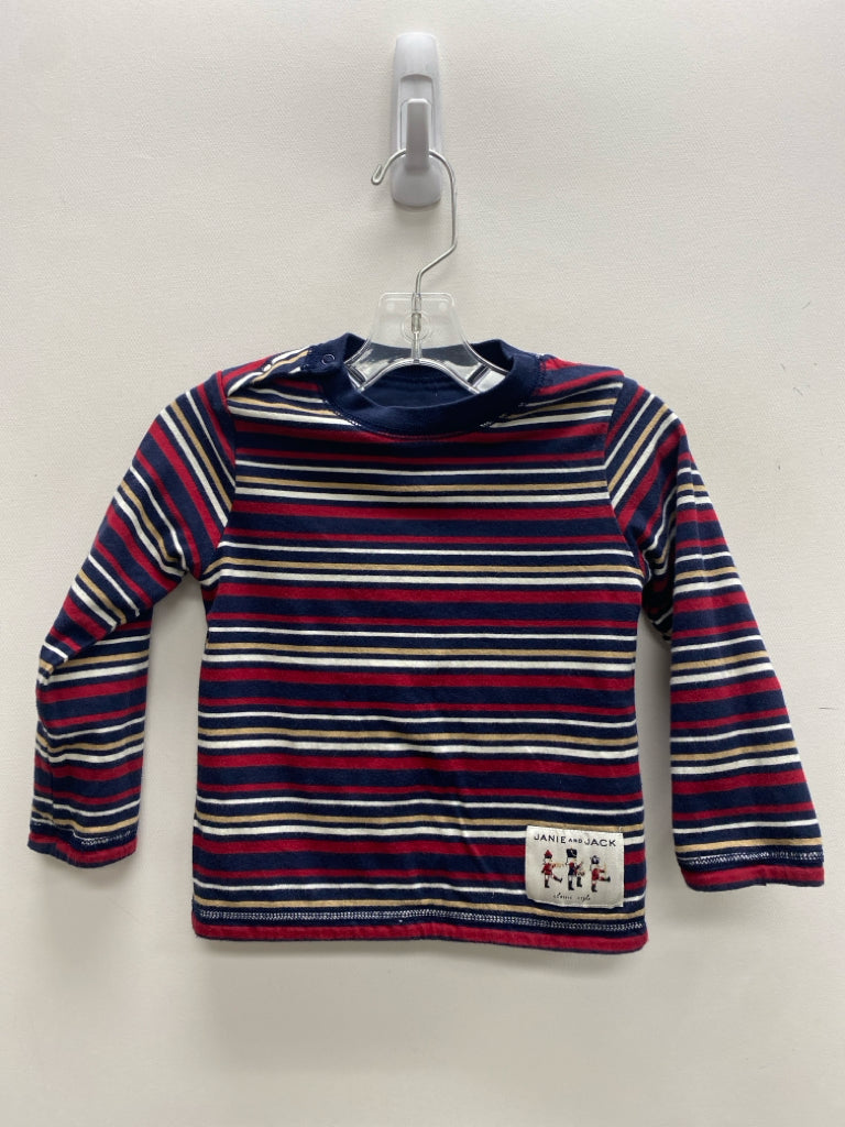 Janie and Jack SIZE 2T Navy Red/Tan Stripe Reversible Boy's Shirt