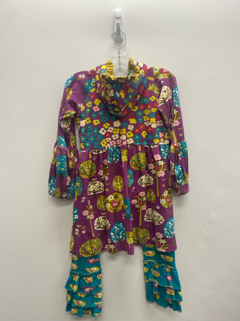 Jelly the Pug SIZE 8 Purple Turquoise/Multi Flowers Hooded Girl's 2pc