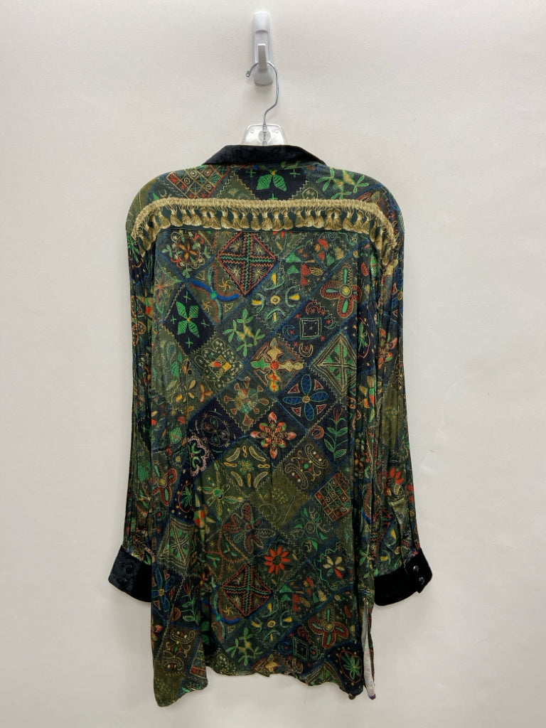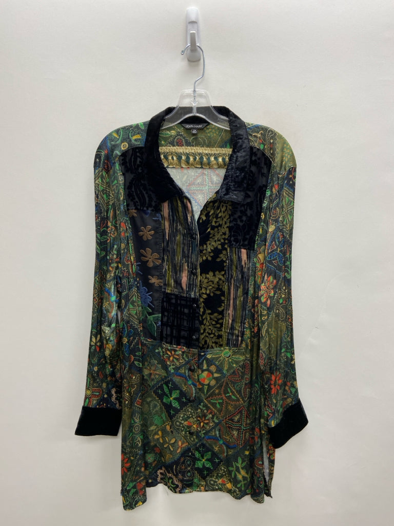 JOHN MARK SIZE 2X Green Black/Multi Zip Down Plus Size Dress