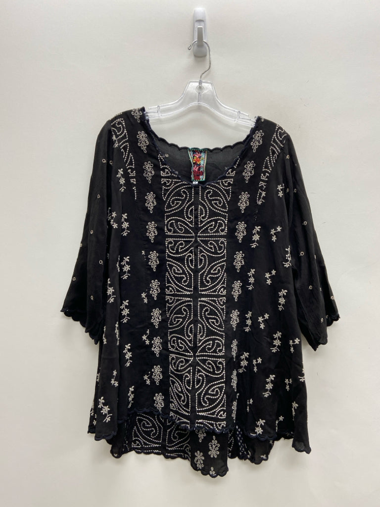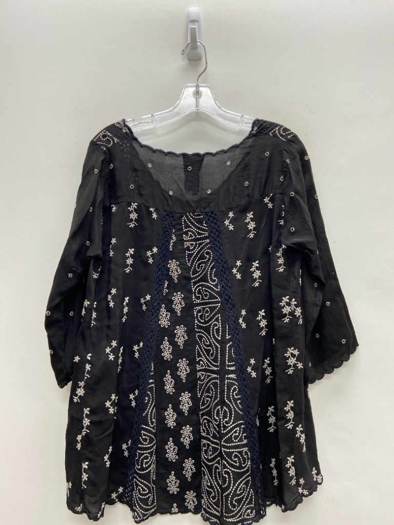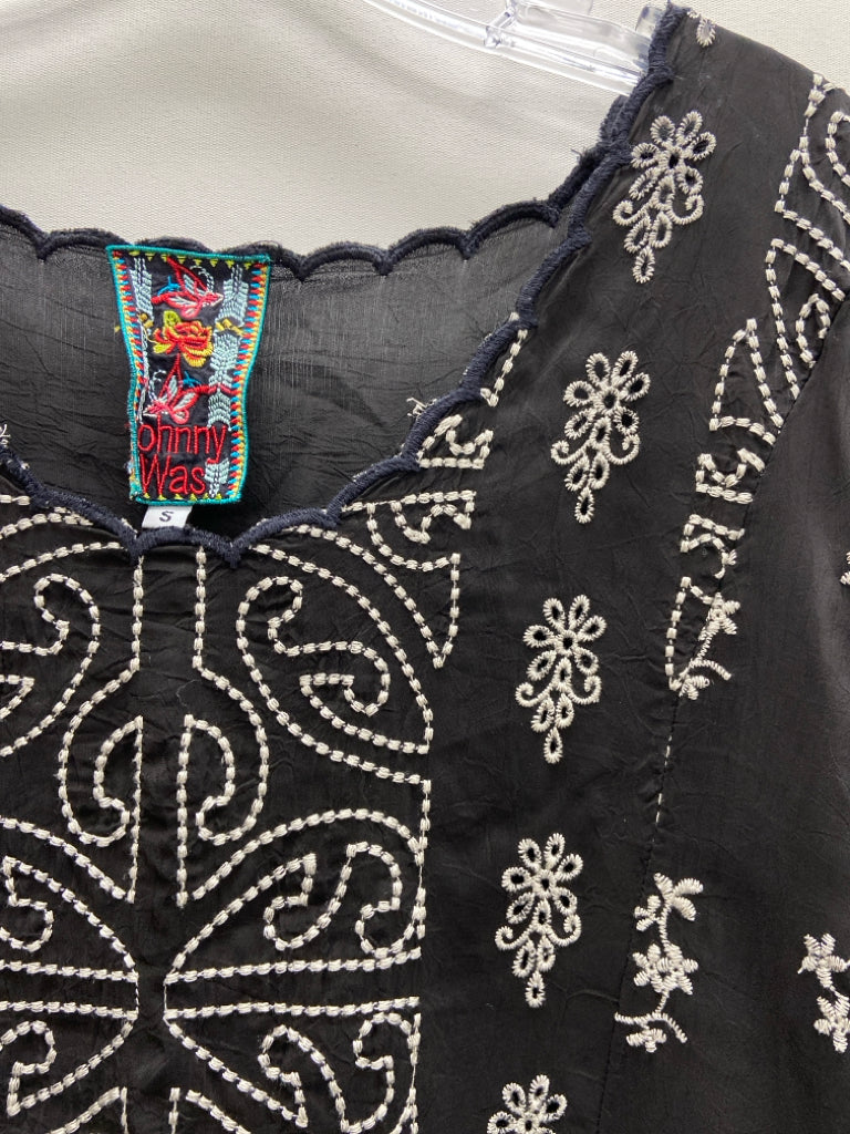 JOHNNY WAS Size S Black Gray Tunic Embroidered Ladies Top