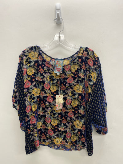 JOHNNY WAS Size S Navy Yellow/Green Flowers Velour Ladies Top