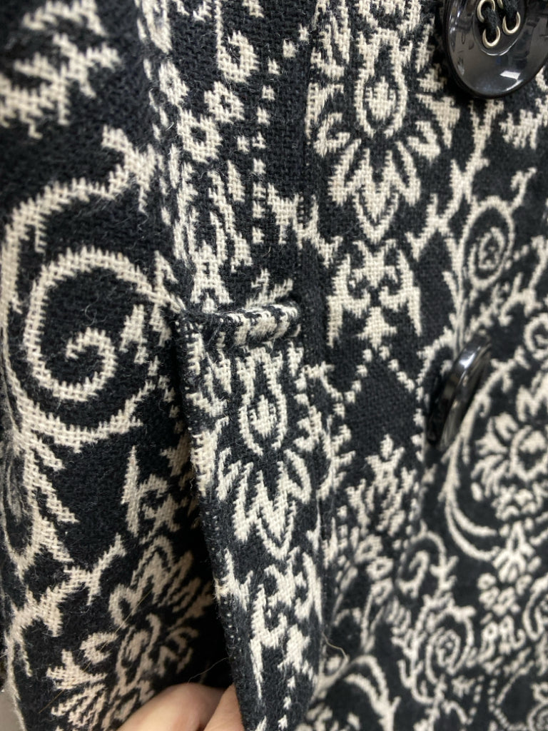 Karlie Size M Black Cream Medallion Double-Breasted Ladies Coat
