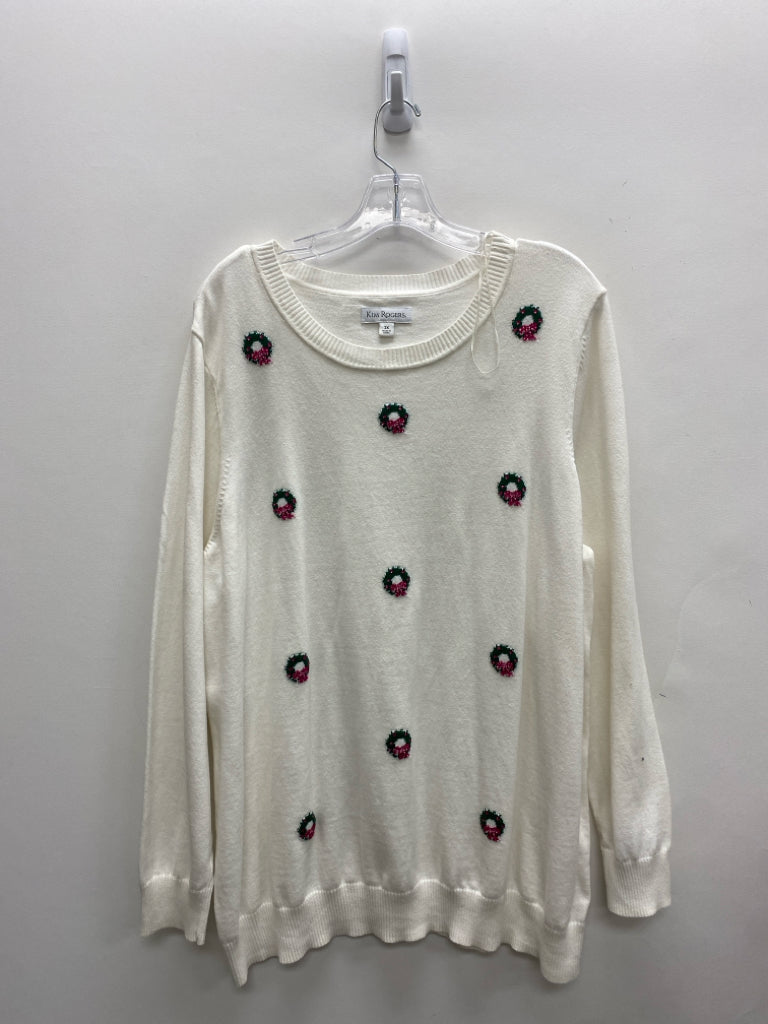 Kim Rogers Size 2X White Green/Pink Wreath Ladies Sweater